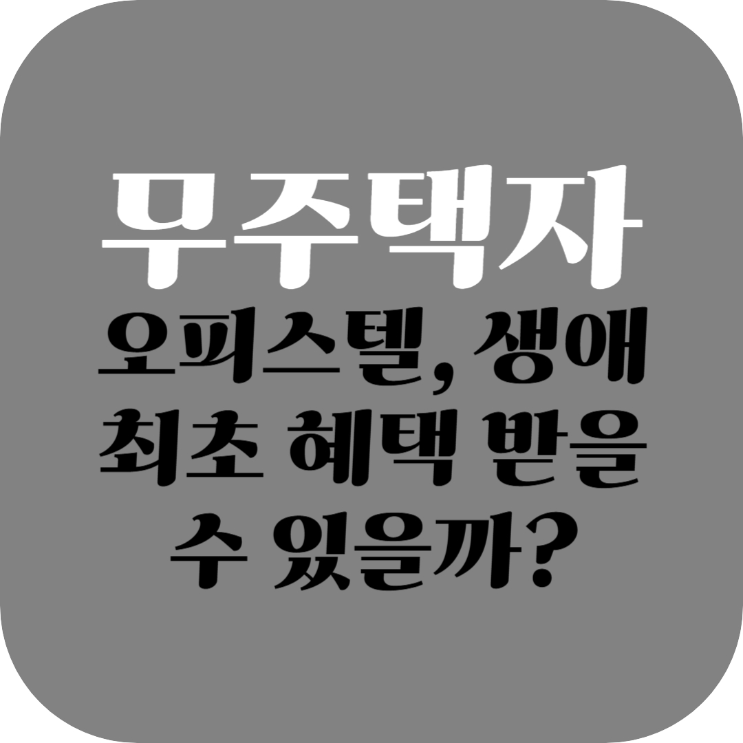 "오피스텔은 생애최초 혜택이 거의 없다." 즉, 무주택자라 하더라도 아파트와 동일한 지원을 기대하기는 어렵습니다. 꼼꼼하게 자금 계획을 세우시길 바랍니다.