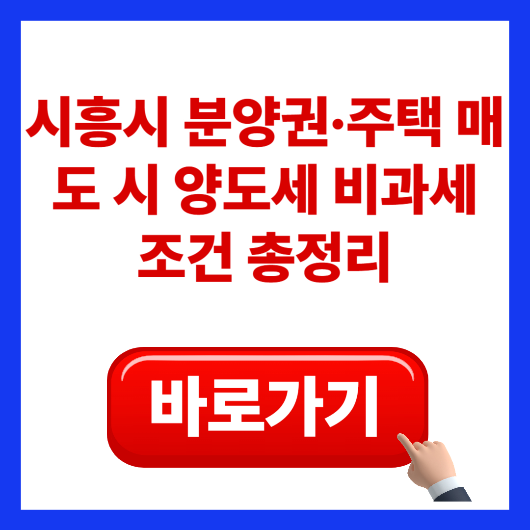 따라서 매도 계획이 있다면, 현재 보유한 것이 분양권인지, 이미 준공된 주택인지 꼭 확인해야 하며, 시흥시처럼 조정지역이 해제된 곳은 거주요건 부담이 사라지므로 비과세 혜택을 받을 수 있다는 점이 핵심입니다.