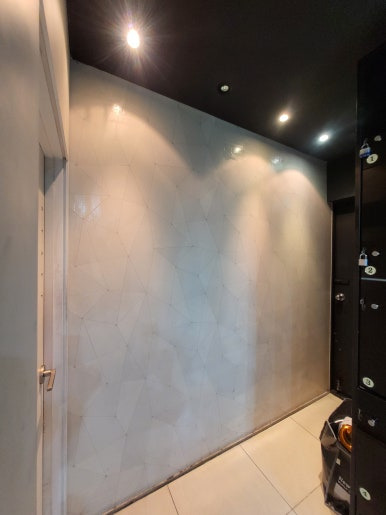 메인 벽면으로 데스크 뒤벽면입니다. 하단부가 심하게 오염이 되어있었고 스크래치가 많이 나있었습니다. 기존에 페인트 마감이었는데 인테리어필름으로 새롭게 마감하였습니다.