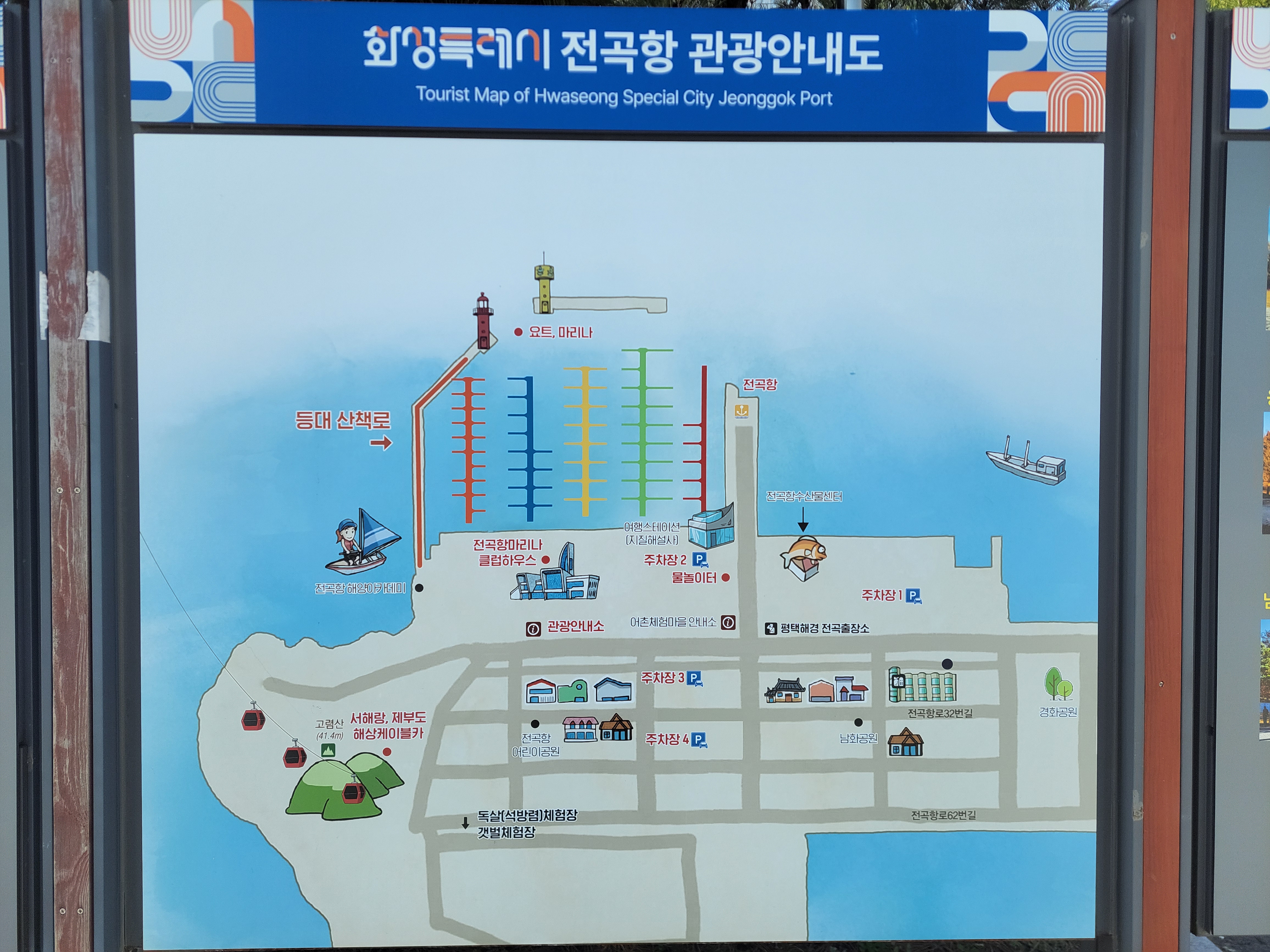 현장에는 화성특례시 관광안내도와 서부해안 관광안내도, 전곡항 관광안내도, 주요 관광지 안내판 등이 잘 설치되어 있었습니다. 이 안내판들을 보면 전곡항만 단독으로 보는 것보다 주변 지역과 함께 묶어서 움직이는 것이 훨씬 효율적이라는 점을 알 수 있습니다.