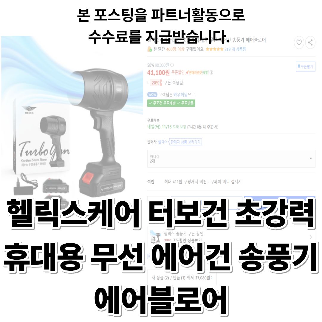 제가 사용한 제품은 헬릭스케어의 무선 휴대용 에어건 송풍기로, 쿠팡에서 로켓배송으로 바로 받을 수 있는 제품입니다. 현재도 합리적인 가격대로 구매 가능하니 참고하셔도 좋아요.